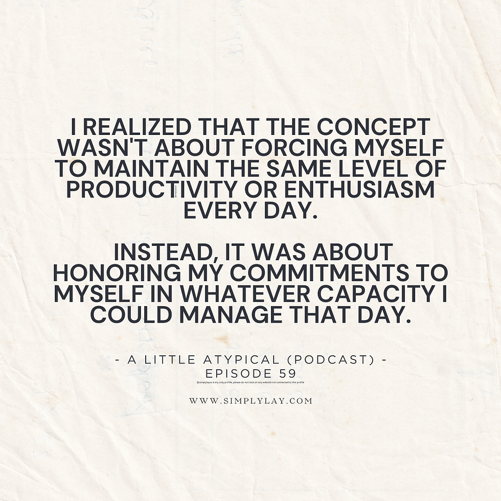 In A Little Atypical Episode 59, I dive deep into the "showing up despite" mindset. It's a transformative approach to consistency that honors your effort at any percentage, not just at 100%. If you've ever felt stuck in the "I fell off" cycle or struggle with all-or-nothing thinking, this episode explores why showing up despite challenges isn't harsh but compassionate. I share real examples from morning routines to creative projects, plus a personal story about navigating burnout, an accountability update on my fall transition, and a card pull that perfectly ties into stepping into your power even when things feel imperfect. Check out the episode in any of the links below to hear the full story.